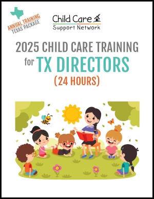 This printed package is 24 clock hours and fulfills the Self-Instructional portion of the annual training requirement for Directors at a Standard or a Rising Star center in Texas. The material we selected covers topics per the Texas Health and Human Services Commission which takes the guesswork out of it for you!