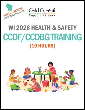 Stop worrying about selecting the right training Topics! This convenient PRINTED package fulfills 10 clock hours of Health & Safety CCDF/CCDBG annual training requirements for Caregivers, Administrators, and Directors at Wisconsin Family or Group center per the U.S. Department of Health & Human Services / Administration for Children and Families, Office of Child Care. We've eliminated the guesswork by covering 10 of the 11 required Health & Safety Topics, and we enter completed Packages in the Wisconsin Registry for you!